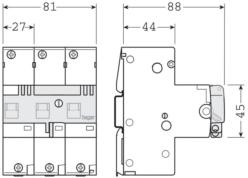 HAGER - Johdonsuojakatkaisija sel. 3x50A 25kA - HTN350E 3x50A E-käy 25kA