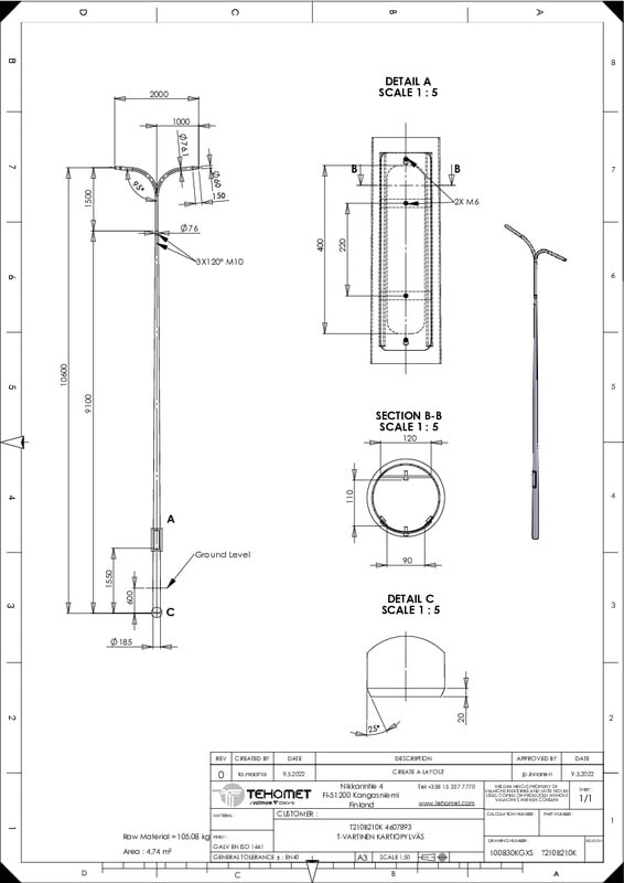 TEHOMET - Teräskartiopylväs - T210B210 teräskartiopylväs