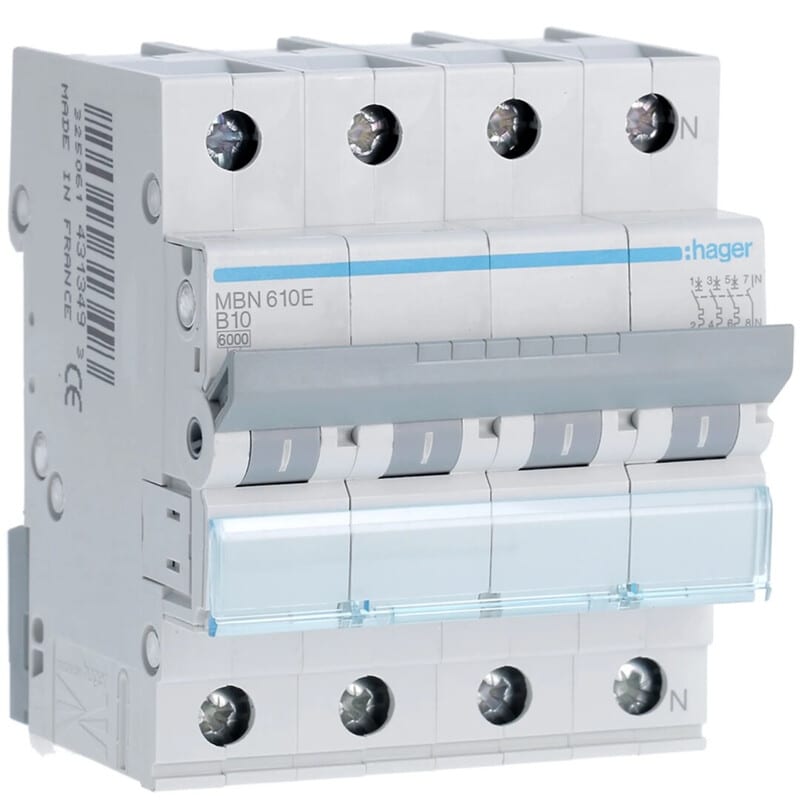 HAGER - Johdonsuojakatkaisija 10A 6kA - MBN610 3+N 10A B-käy 6kA