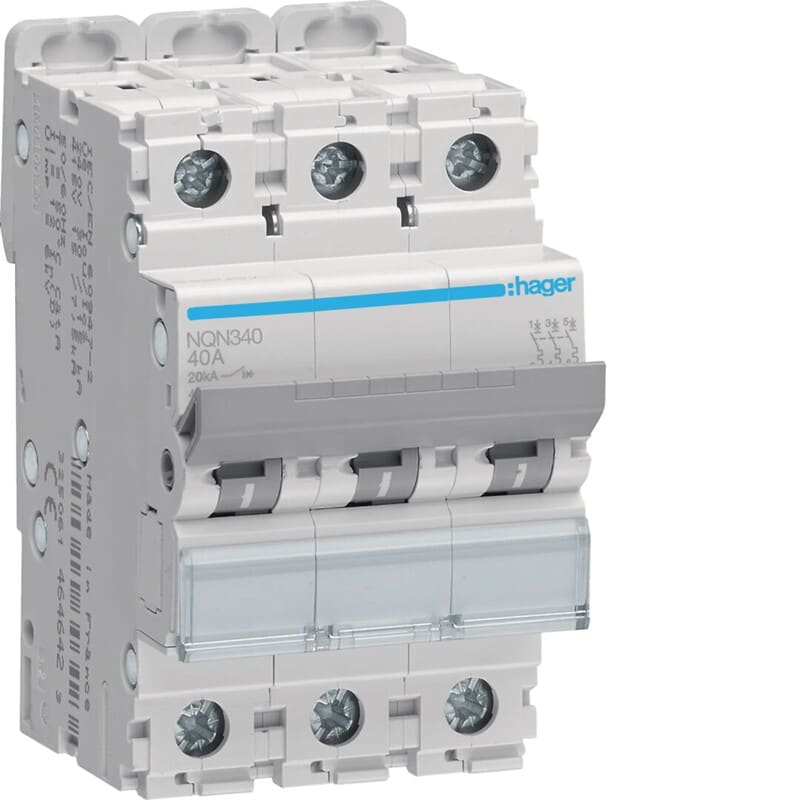 HAGER - Johdonsuojakatkaisija 3x40A 20kA - NQN340 3x40A B-käy 20kA