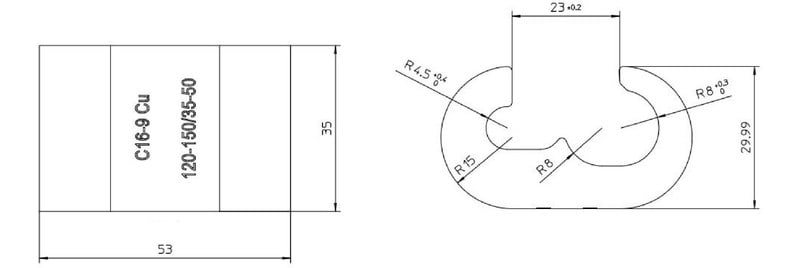 Haaroitusjohtimen poikkipinta-ala - 35...50 mm²