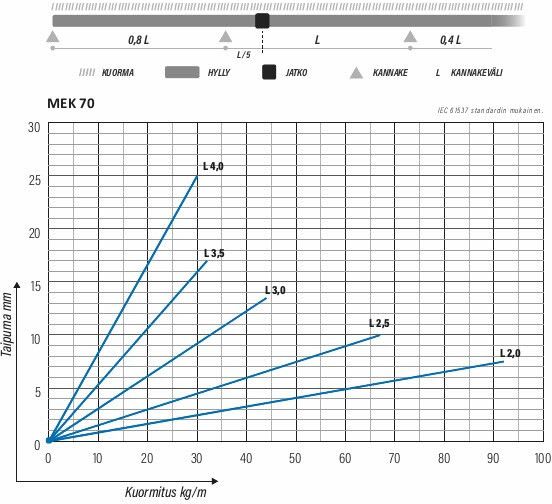 Kantava valaisinkisko. MEK 70 valaisinkisko sopii monipuolisesti vaativiin valaisinasennuksiin. Soveltuvia käyttökohteita ovat esimerkiksi toimisto- ja liikerakennukset, kauppakeskukset, koulut ja parkkihallit. Yhteensopiva MEK 70 K ja MEK 70 S järjestelmien kanssa.