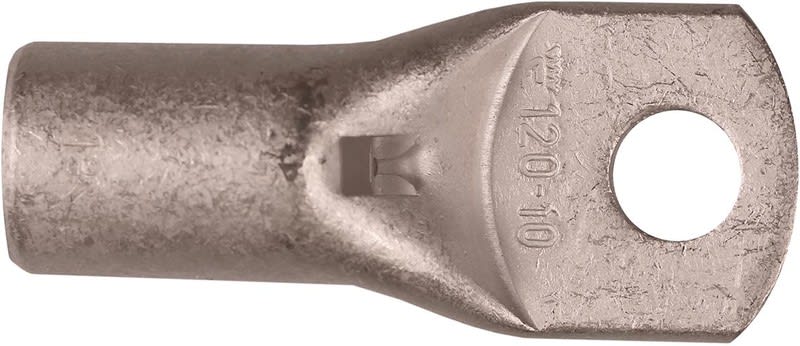 Putkikaapelikenkä luokan 1 ja 2 kuparijohtimille, 120 mm², laatassa M10-reikä (BS 4579:1).