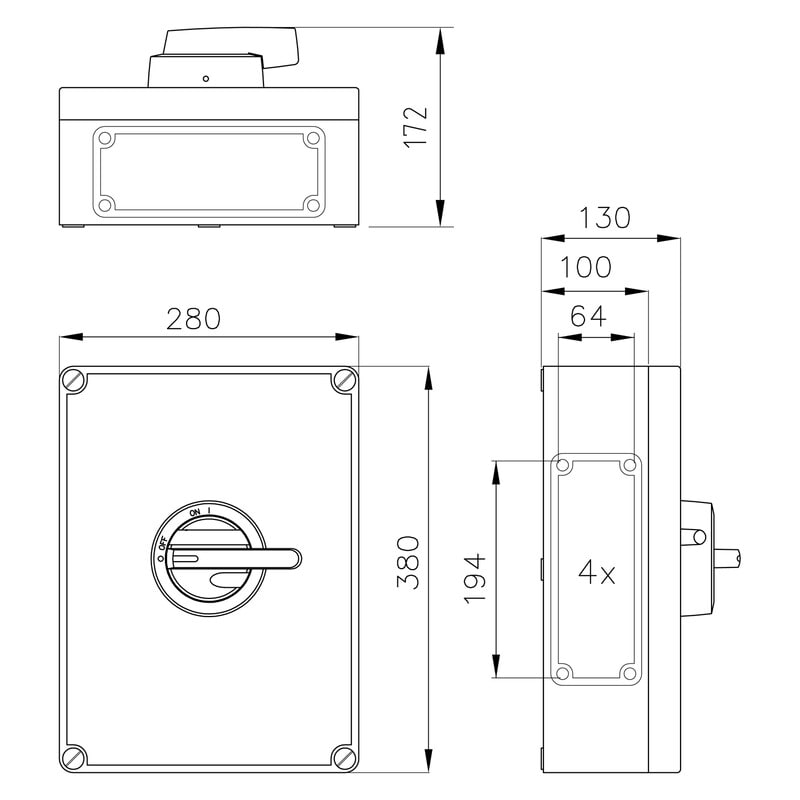 Sisältää:Kytkimen: KU 3125 (3600785) | Kaapelin koko kytkentätilaan (vain Cu): 6-70 mm2 | Apukoskettimen: 1V160KU (3600819) Kaapeliläpiviennit: 2 x M40 (19-28mm) muovi + 1 x M16 (5-10mm) muovi Läpivientien asennussuunnat ilmoitettava tilattaessa!