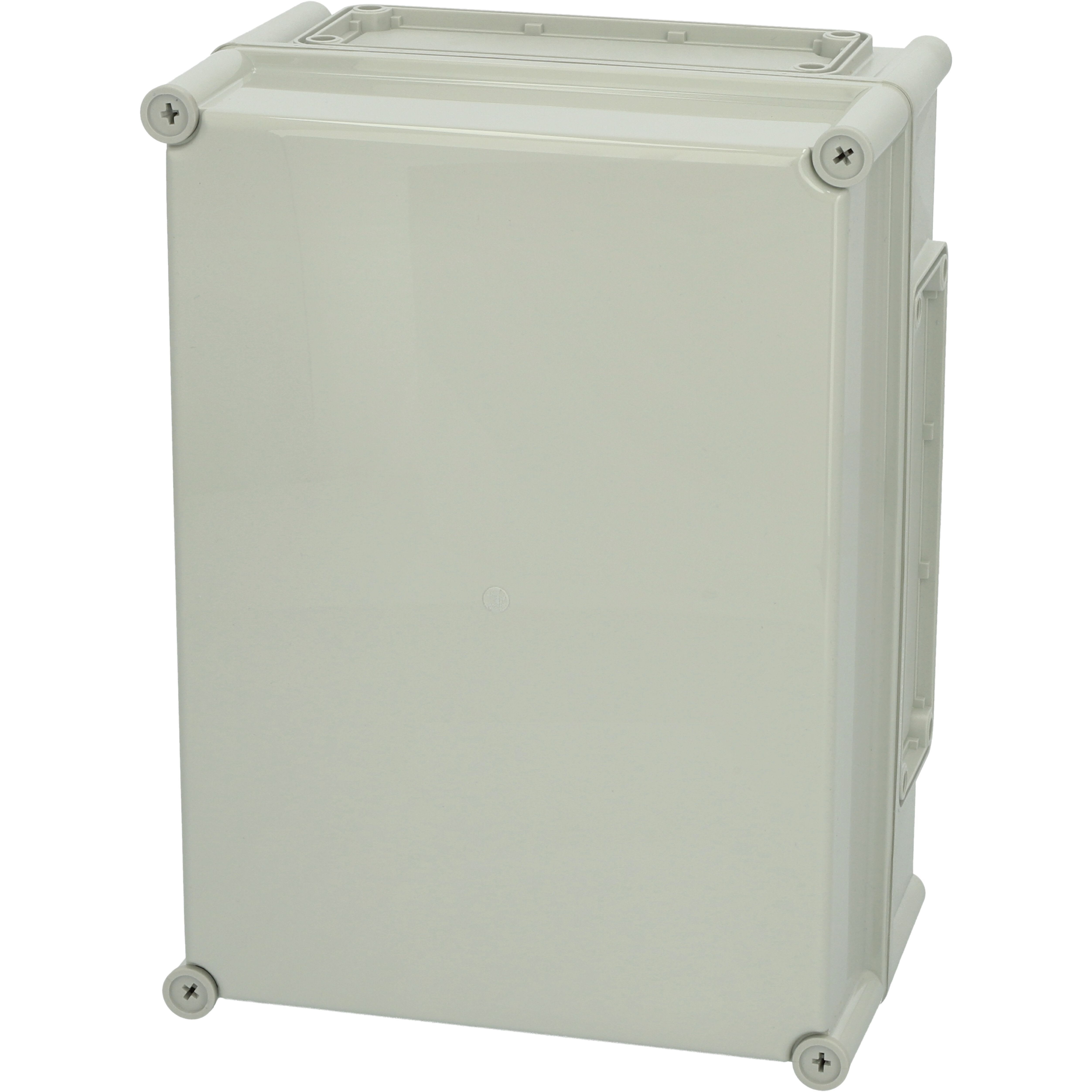 Polykarbonaattikotelo, 380x280x180, Laippa-aukollinen alaosa (4kpl koko2), Harmaa kansi PUR-tiivisteellä, 4kpl harmaa polyamidi kansiruuvi, 4kpl ruuvi asennuslevylle, IP66/67, IK08 FIBOX EK polykarbonaattikotelot