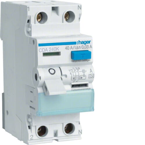 HAGER - Vikavirtasuojakytkin A-tyyppi - CDA240K 30mA/2X40A