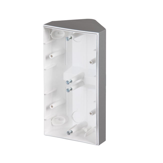 Kulmaan asennettava pinta-asennuskotelo Impressivo uppoasennus tuotteille. Ei sovellu kaksoispistorasioille. Käyttö 85mm peitelevyn kanssa.
