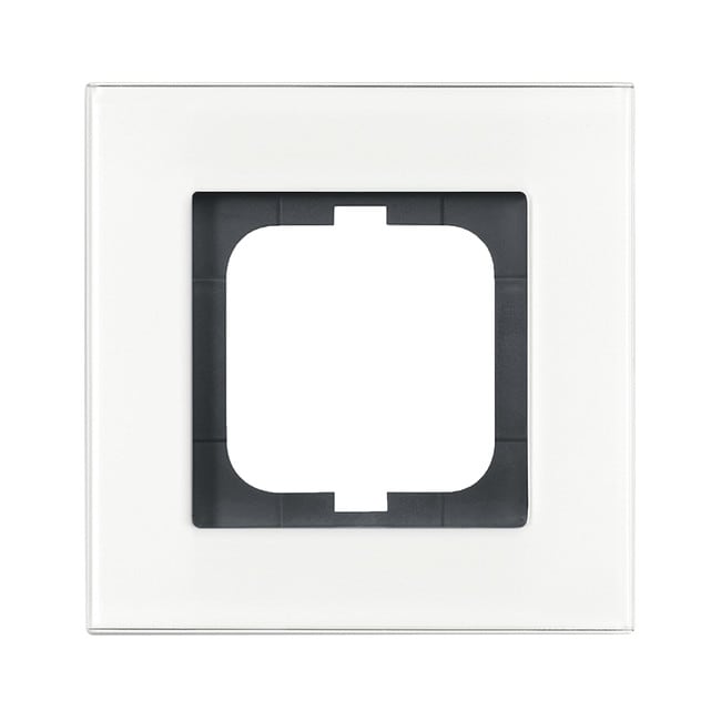 Uppoasennuspeitelevy 1-osaisille keskiölevyllisille kalusteille, kuten esimerkiksi kytkimet. Materiaali lasia. Puhdistus tavanomaisilla miedoilla kotitalouden pesuaineilla. Voimakkaiden liuottimien käyttöä on varottava.
