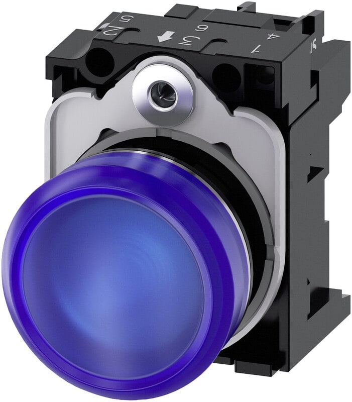 Merkkivalot, 22 mm, pyöreä, metalli, kiiltävä, sininen, linssi, sileä, pidikkeellä, LED-moduuli integroidulla LED 24 V AC/DC, ruuviliitin