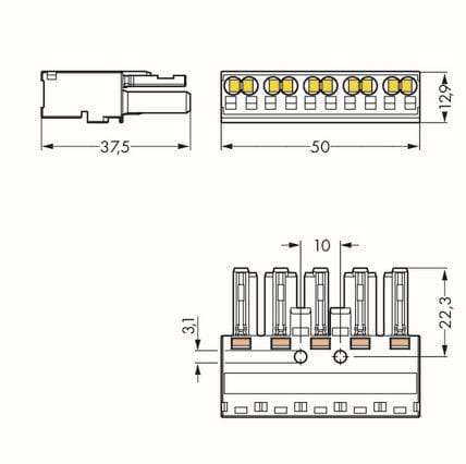 WAGO - Pistoliitin - 5-Nap naarasliitin HAR (50 kpl.)