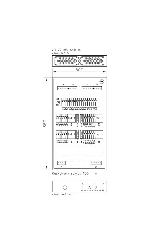 Pääkytkin etukojeena, jako 1x/2x VVSK + suojaamattomat lähdöt: