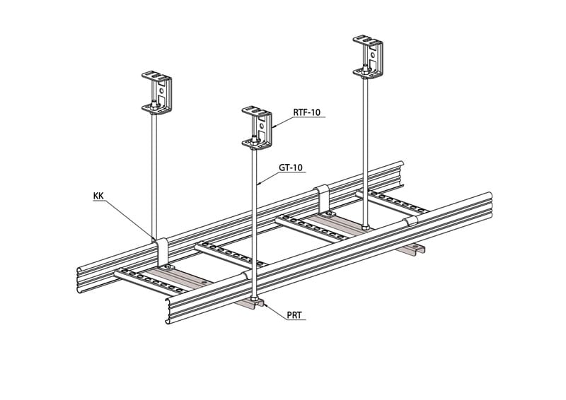 Porttikannakkeella PRT tehdään portti- sekä keskikannatus tikashyllyille KS20, KS60, KSE80, KS80, KS80 SP2.0 ja KSF80 kierretangoilla GT-10.