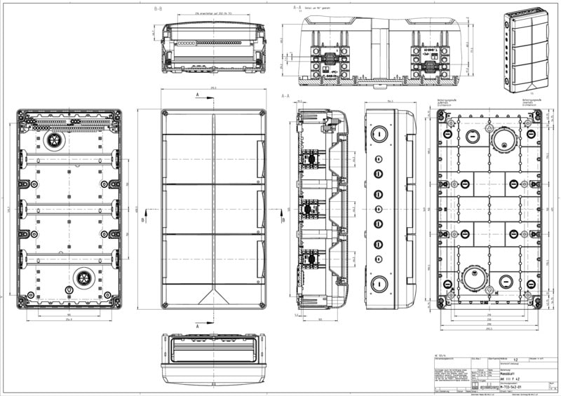 Moduulikotelo - teollisuusmalli -, laipan malli, avoimilla päädyillä, joissa voidaan käyttää erilaisia laippoja, useampien AK-F-moduulikoteloiden liittämiseksi yhteen yhdistyslaipan avulla, 3-rivinen, 42 moduulia, DIN-asennuskiskojen väli 150 mm, integroiduilla tuuletusventtiileillä kondenssiveden muodostumisen vähentämiseksi, DIN-peitelevy ja merkintäliuska, ylimääräisillä kaksoiskalvotiivisteillä ja muilla tarvikkeilla, laipat ja yhdistyslaipat on hankittava erikseen.