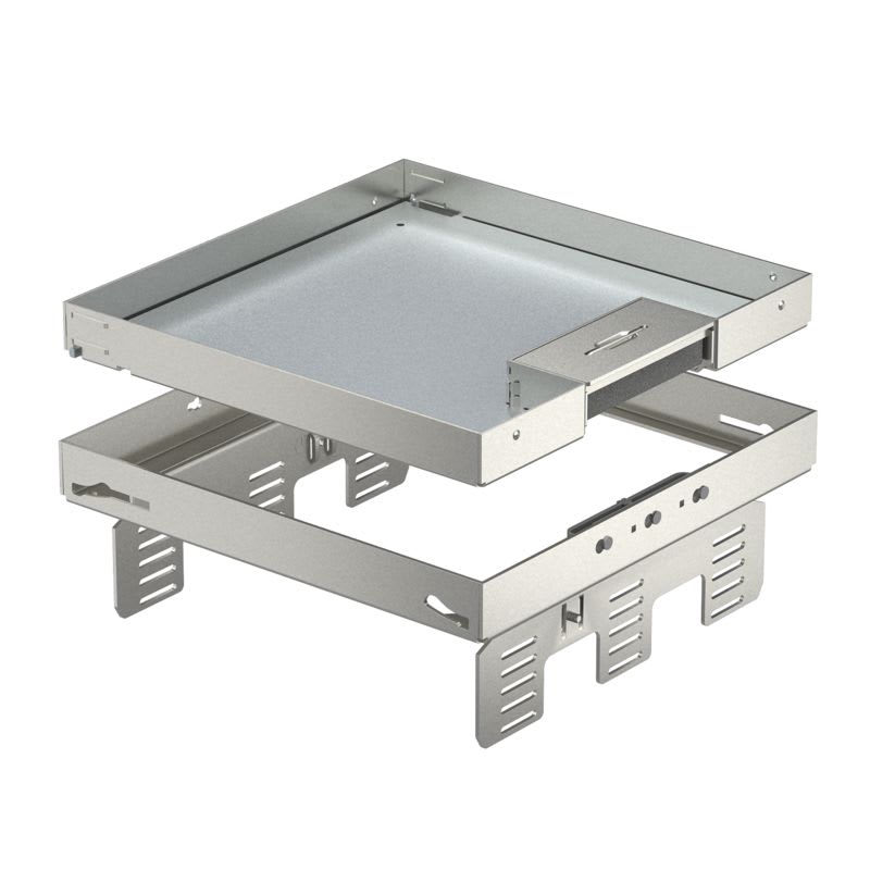Lattiarasia 12-mod, nimelliskoko 9, voidaan käyttää valu- sekäonteloasennuksissa, säätöraudat tilattava erikseen, 243x243mm, EN 1.4301RST