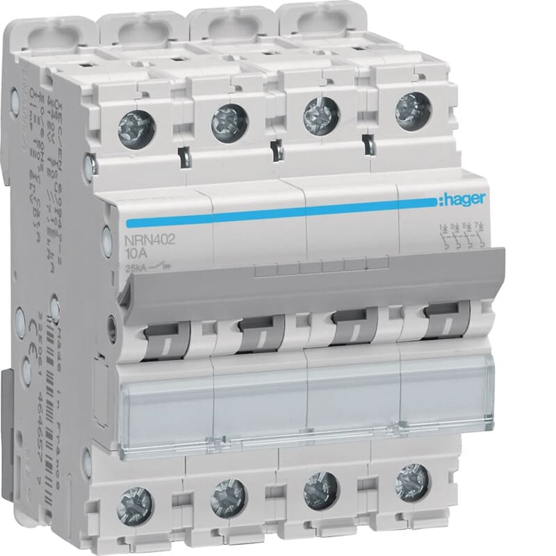 HAGER - Johdonsuojakatkaisija 4x2A 25kA - NRN402 4x2A C-käy 25kA
