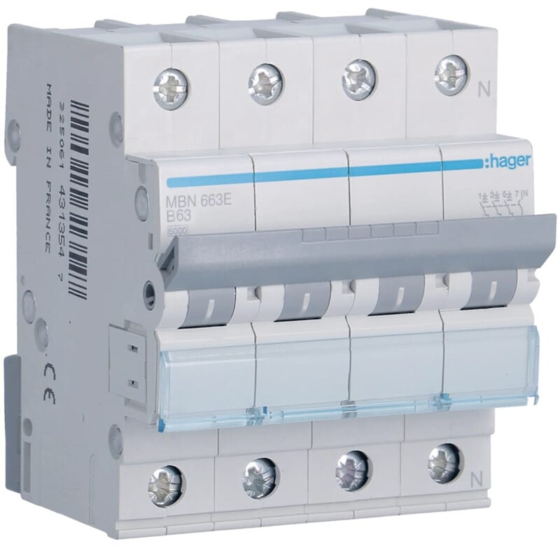 HAGER - Johdonsuojakatkaisija 63A 6kA - MBN663 3+N 63A B-käy 6kA