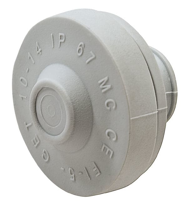 Läpivientikumit suojaavat kotelot pölyltä ja kosteudelta. Vaalean harmaa, M- mitoitus, kaapelille 3-5 mm. Paloluokka UL 94 V-0, itsestään sammuva.