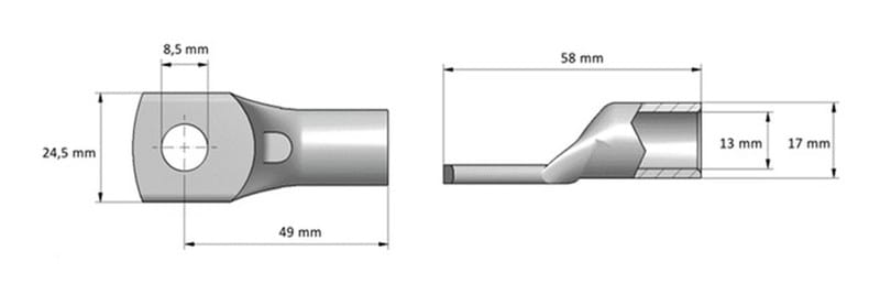 PK Cu-putkikaapelikenkä 70mm2 M8 PK-putkikaapelikengät