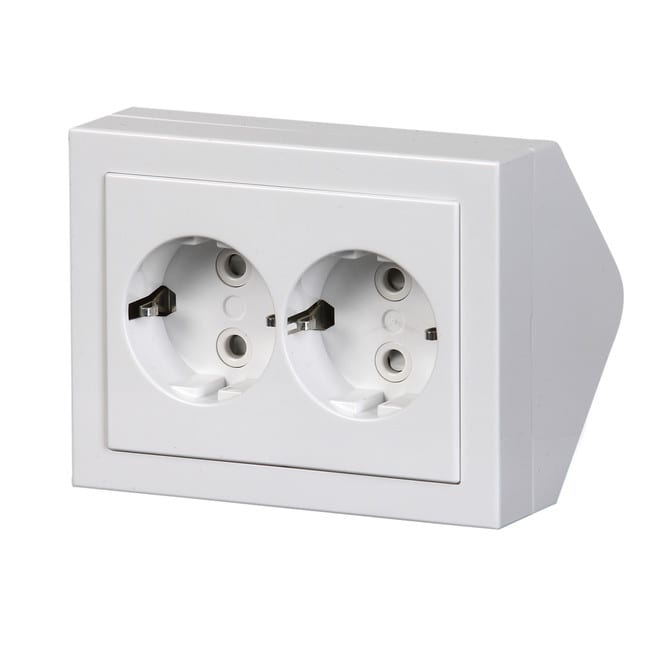 Pistorasia, Impressivo, 2-osainen, maadoitettu, jousiliittimet,kulma-asennus, valkoinen