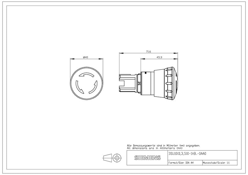 SIEMENS - Hätä-/seis painike - 3SU1050-1HB20-0AA0
