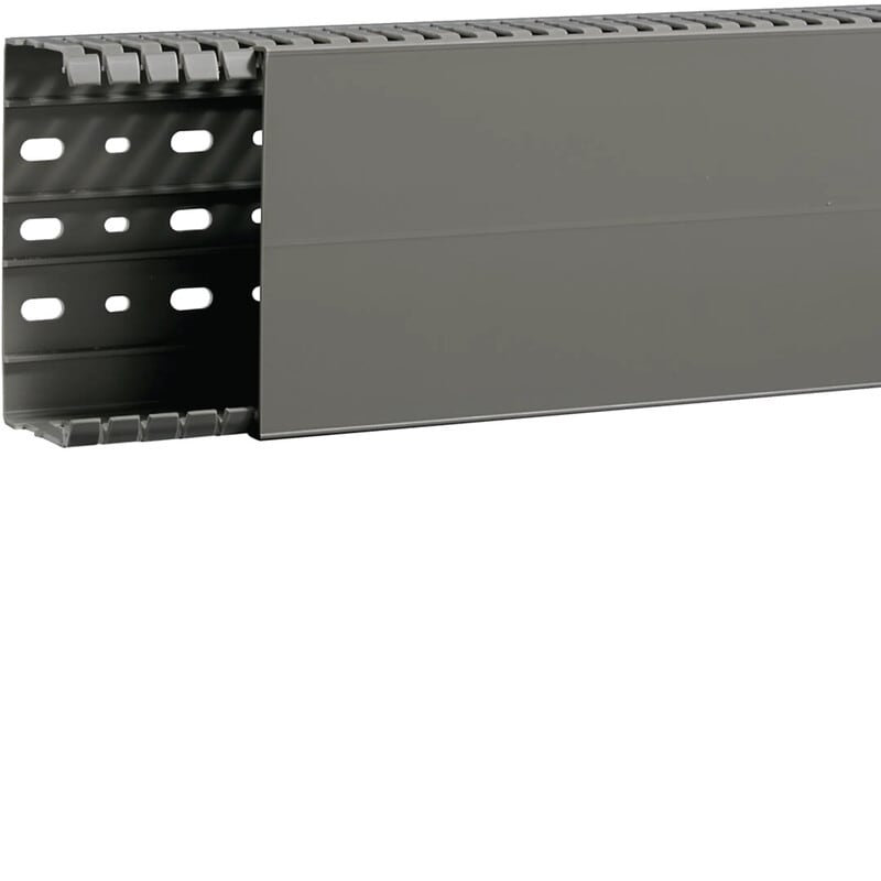 Johdotuskouru PVC BA7A 60x120mm harmaa Johdotuskouru PVC BA7A 60x120mm kivenharmaaJohdotuskouru koostuu umpikannesta ja rungosta, jonka sivuseinät on aukotettu kampatyyppiseksi johdotusta varten. Sivukammat on katkaistavissa työkalulla sivuvahvikkeen yläreunan tasoon. Kanava on varustettavissa erikseen tilattavilla kaapelipidikkeillä. Pohjarei'itys standardin EN 50085 mukaan.