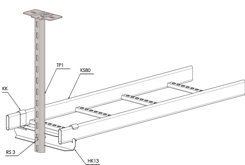 Kattokannakkeella TP1 tehdään portti- ja keskikannatukset tikashyllyille KS20, KS60, KSE80, KS80, KS80 SP2.0 ja KSF80 porttikannattimella TPK tai keskikannakkeella HK13. Voidaan asentaa sekä kattoon että lattiaan.