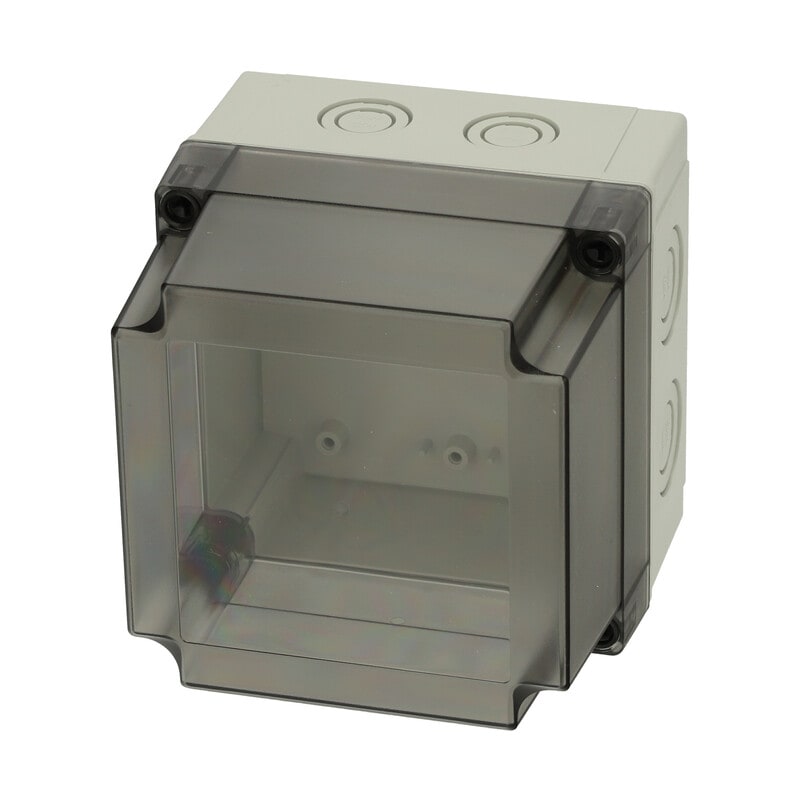 MNX PCM polykarbonaattikotelo, 130x130x125, metriset läpilyöntiaihiot, savunharmaa läpinäkyvä kansi, alaosa TPE-tiivisteellä, 4 kpl ruuvit asennuslevylle/DIN-kiskolle, 4 kpl polyamidi kansiruuvia, IP66/67, IK08 FIBOX MNX PCM polykarbonaattiasennuskotelot metrisillä läpivientiaihioilla