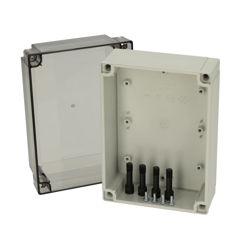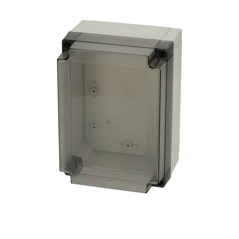 MNX PC polykarbonaattikotelo, 180x130x100, Korkea alaosa, Savunharmaa läpinäkyvä kansi, Alaosa ilman läpilyöntiaihioita, Alaosa TPE-tiivisteellä, 4 kpl ruuvit asennuslevylle/DIN-kiskolle, 4 kpl mustaa polyamidi kansiruuvia, IP66/67, IK08 FIBOX MNX PC polykarbonaattiasennuskotelot