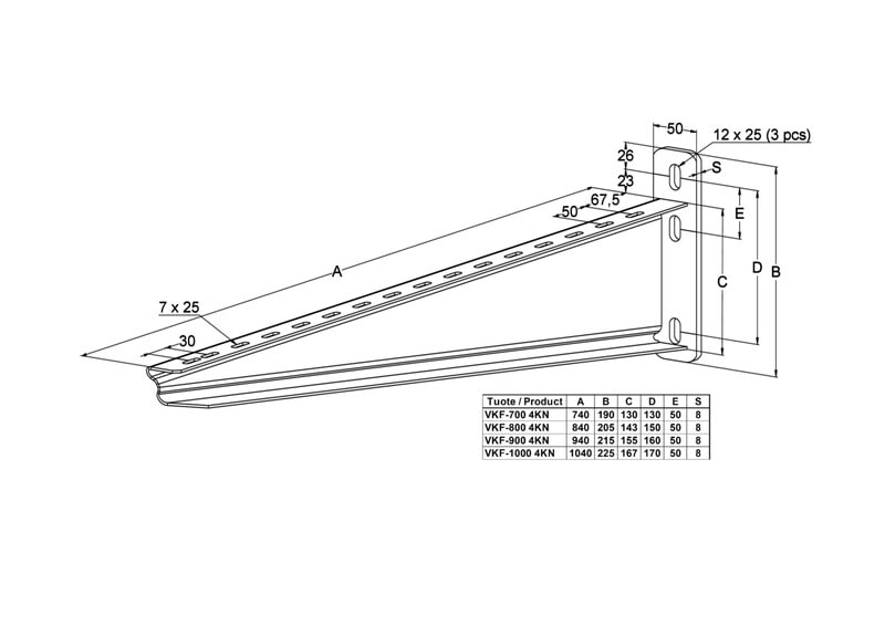 Seinäkannakkeella VKF kiinnitetään tikas-, levy- ja lankahyllyjä seinään, asennuskiskoihin AS, ASR, ASR-L ja ASR-P sekä kattokannakkeisiin HK1, HK2, TP2, TP2-L ja TP2-P.