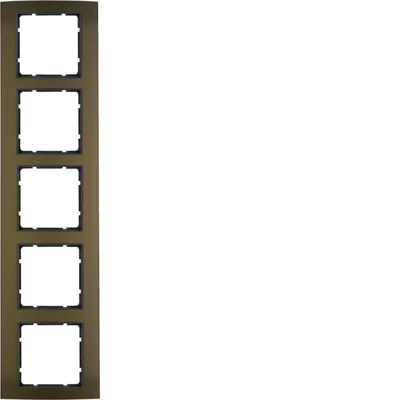 Peitelevy Hager B.3 5os. 81mm ruskea-Al/antrasiitti Peitelevy Berker B.3, 5-osainen. Pintamateriaali ruskeaksi anodisoidusta alumiinista ja antrasiitin värinen pohjalevy halogeenittomasta thermoplast-muovista. Käyttö Berker S.1 -kalustesarjan antrasiitin värisellä 55x55 keskiölevyllä varustettujen kojeiden kanssa.