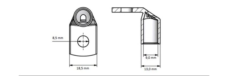 Cu-kulmakaapelikenkä 90ast. 35mm2 M8 Cu-kulmakaapelikengät