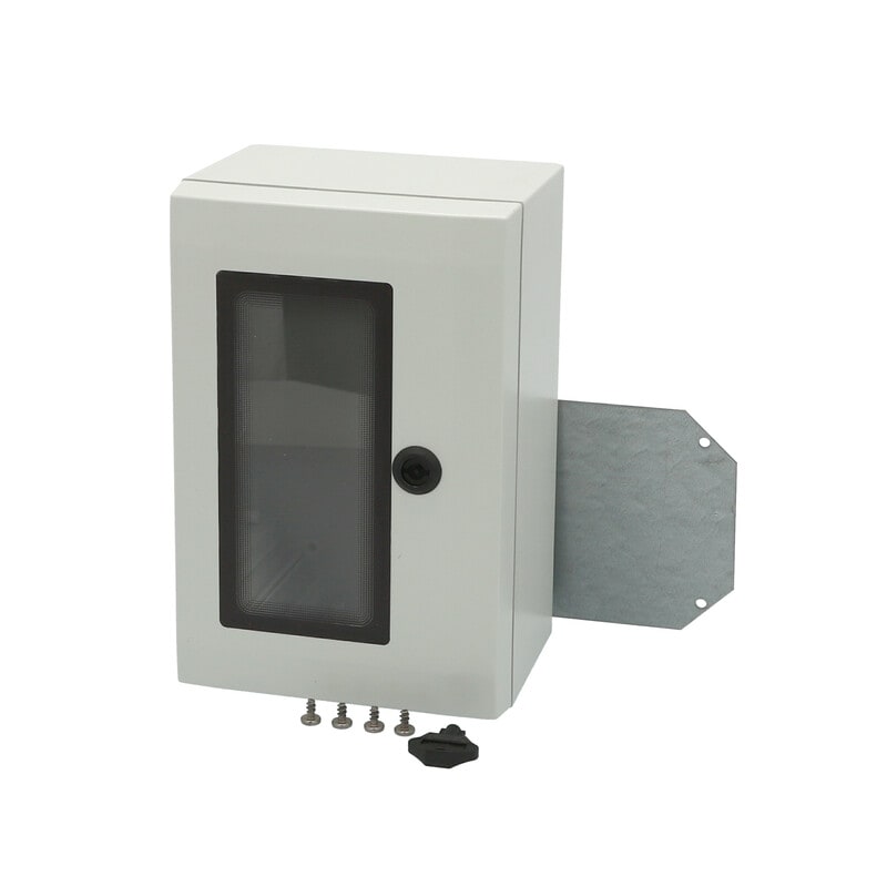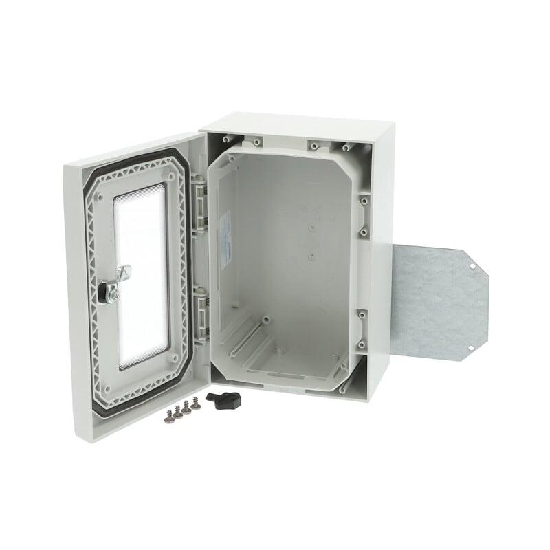 Sisältää : Kaapin alaosa, ovi PUR tiivisteellä ja ikkunalla, asennuslevy, ruuvit asennuslevylle. 3mm kaksoislehtilukko(t) avaimella. S versiot kääntökahvalla. Oviohjain sisältyy. IP65; IK08