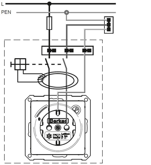 HAGER - Pistorasia K.5 - 1S/16A UKJ vvs 30mA/A rst