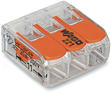 221-sarjan Vipu-WAGO on 40% edeltäjäänsä pienempi. Tähän helppokäyttöiseen rasialiittimeen käy kaikki johdintyypit; hienosäikeinen, säikeinen ja yksilankainen. Lisäksi käytettävyyttä on parannettu läpinäkyvyydellä ja kahdella mittauspisteellä.