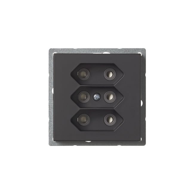 3-osainen Euro pistorasia keskiölevyllä. Pistorasiassa on liittimet 0- ja N-johtimille ja niihin voi kytkeä max 4 johtoa (haaroitusmahdollisuus). Lisäksi rungossa on 2-lisäliitintä joihin voi kytkeä kumpaankin 2 johtoa. Liittimet on hyväksytty ML ja MK johtimille. Pistorasian runko on kosketussuojainen ilman peitelevyä.