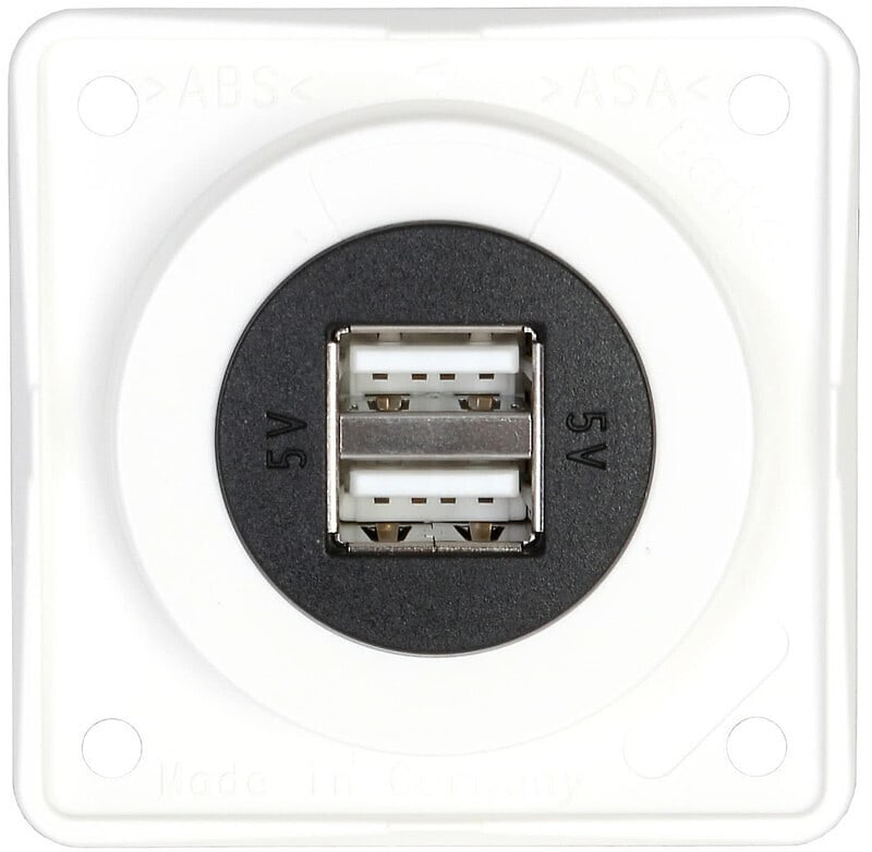 USB-latauspistorasia kanavainen. maksimi latausvirta per kanava 2.5A. maksimi latausvirta yhteensä 5A ladattaessa kummastakinkanavasta samanaikaisesti. syöttöjännite 8-34VDC. väri kehys puhtaanvalkoinen matta. keskiö musta. 15cm liitäntäkaapelilla 12 V USB -latauspistorasia 2-osainen Tulojännite 12 ... 24 VDC Lähtöjännite 5 VDC Lähtövirta maks. per lähtö 2,5 A Tehonkulutus (lepotila) 100 mW Datansiirto ei mahdollinen! − mobiililaitteiden kuten tablettien, älypuhelinten, navigointilaitteiden ja digitaalikameroiden lataukseen USB-kaapelilla − 2:lla USB-pistokkeella tyyppi A − esiasennettu liityntäkaapeleilla (punainen, musta), pituus noin 15 cm