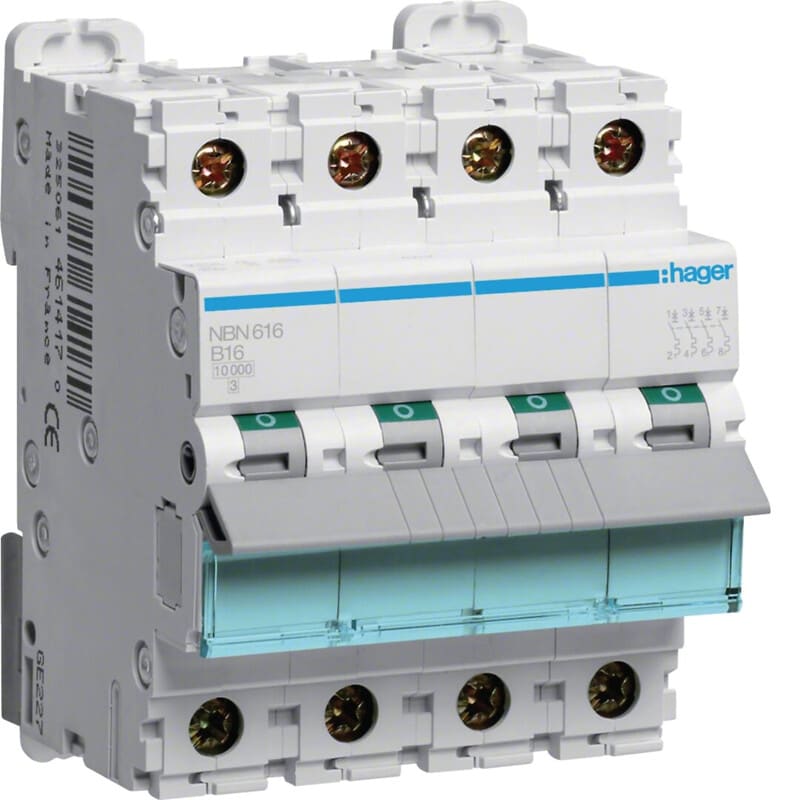 HAGER - Johdonsuojakatkaisija 16A 10kA - NBN616 3L+N B-16A 10kA 4M