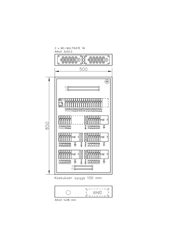 Pääkytkin etukojeena, jako 1x/2x VVSK + suojaamattomat lähdöt: