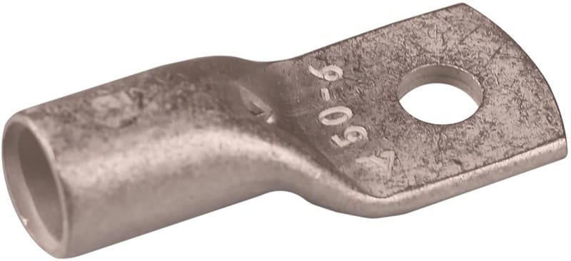 Putkikaapelikenkä luokan 1 ja 2 kuparijohtimille, 50 mm², laatassa M6-reikä (BS 4579:1).