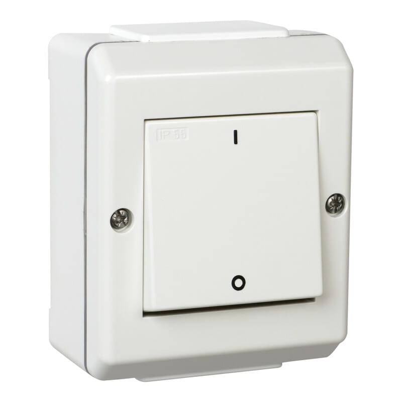 Pinta-asennettavat kytkimet IP55, ruuviliittimin- 16A, 250V, -0-, imp =impulssijousilla - Lyhenteet: PA = pinta-asennus, R = ruuviliittimin Pinta-asennettavat kytkimet IP55, ruuviliittimin