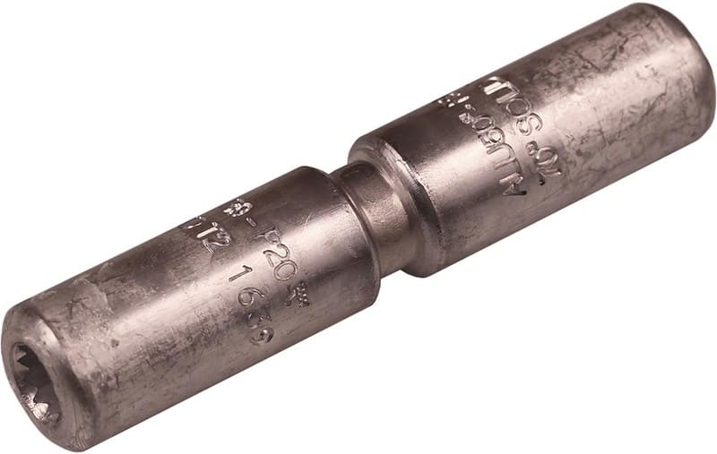 Väliseinällinen Al-jatkoshylsy harvasäikeiselle Al-kaapelille 50 mm² tai yhtenäiselle Al-kaapelille 70 mm². Käytetään poikkipinta-alaltaan samanlaisten Al-johtimien jatkoksiin. Kaksi puristusta tarvitaan. Käytetään Elpressin suositteleman puristustyökalun V1300 kanssa.
