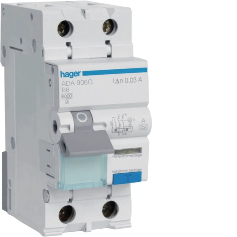HAGER - Vikavirtajohd.suojakat.B-käyrä - ADA906G 2x6A/30mA A-TYYPPI