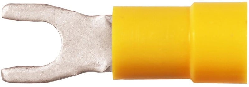 Eristetty haarukkakaapelikenkä kaapelille 4-6 mm2, kuparia, tinattu, muovi PC. Käytetään sertifioidun työkalun GSA0760 kanssa.