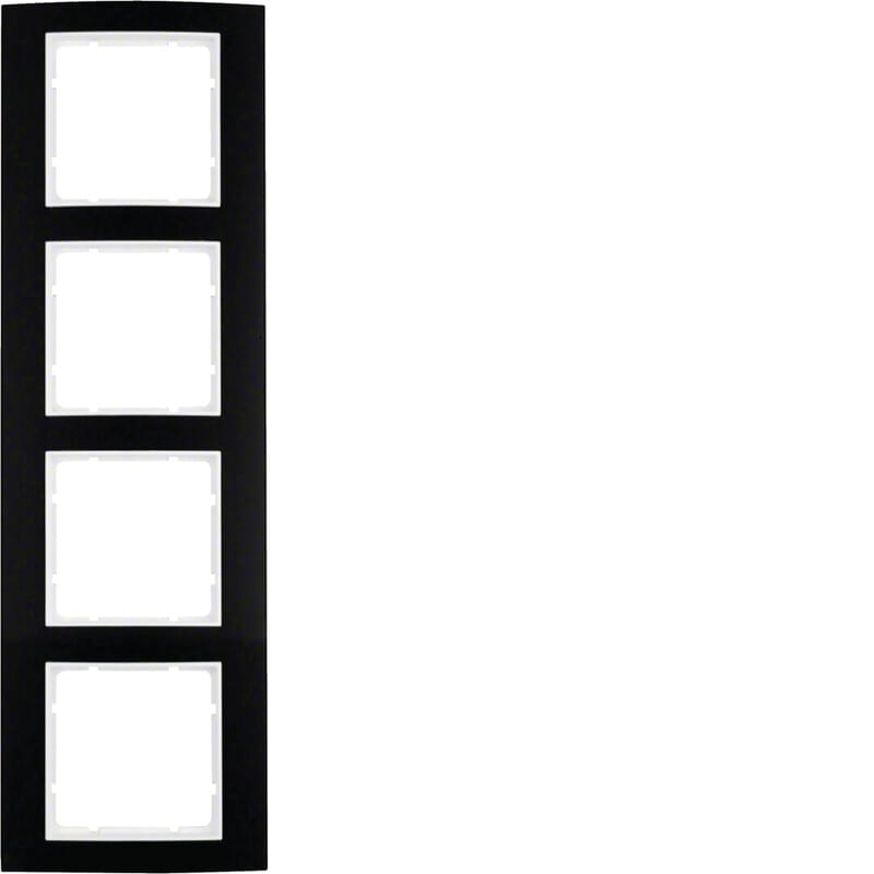Peitelevy Hager B.3 4os. 81mm musta-Al/puhtaanvalkoinen Peitelevy Berker B.3, 4-osainen. Pintamateriaali mustaksi anodisoidusta alumiinista ja puhtaanvalkoinen pohjalevy halogeenittomasta thermoplast-muovista. Käyttö Berker S.1 -kalustesarjan valkoisella 55x55 keskiölevyllä varustettujen kojeiden kanssa.