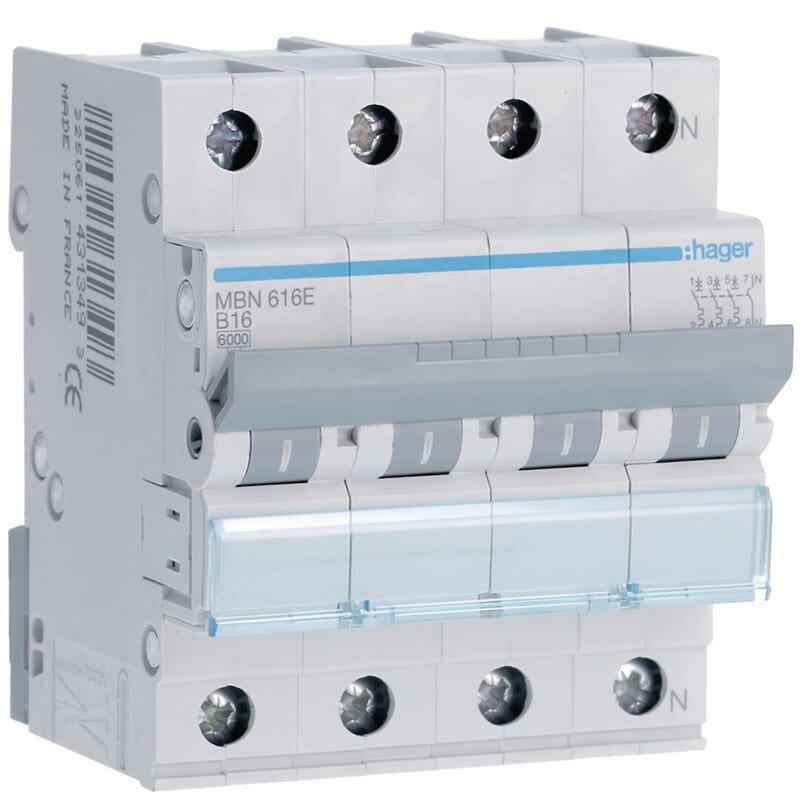 HAGER - Johdonsuojakatkaisija 16A 6kA - MBN616 3+N 16A B-käy 6kA