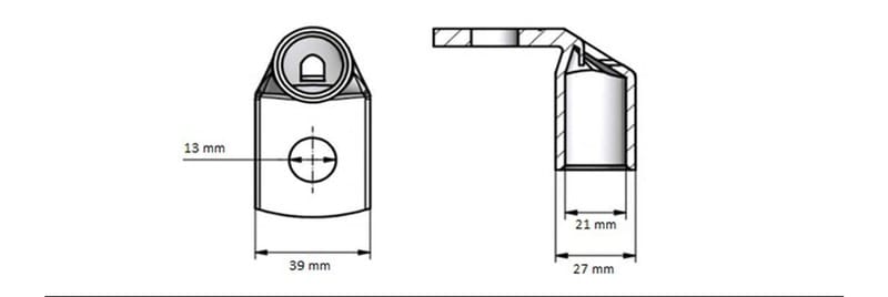 Cu-kulmakaapelikenkä 90ast. 185mm2 M12 Cu-kulmakaapelikengät