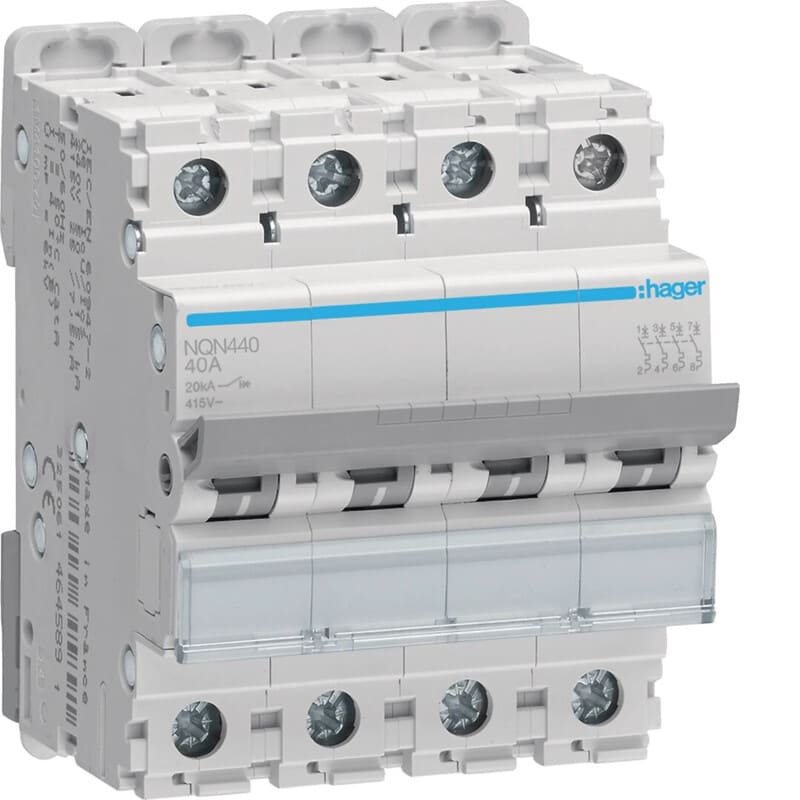 HAGER - Johdonsuojakatkaisija 4x40A 20kA - NQN440 4x40A B-käy 20kA