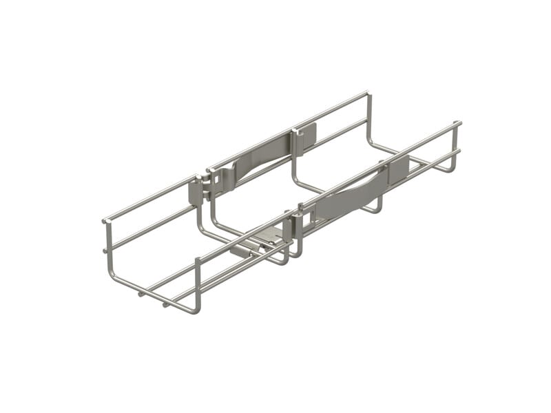 Jatkokappaleella WMT SC1 tehdään ruuviton pikajatko ilman työkaluja 70-200 mm leveisiin lankahyllyihin WMT-50, WMT-100 ja WMT-150. WMT SC1 asennetaan lankahyllyn pohjalle.