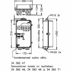 Kotelot ovat silumiinipainevalua, kansi saranoitu, 25 A, 400 V, pylväs- seinäkiinnitys,