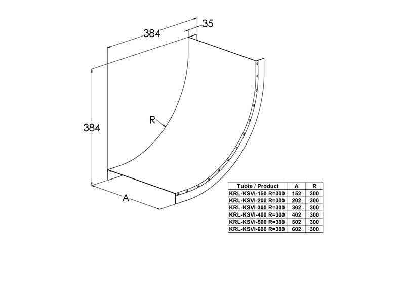 Pystykulman KSVI kansi KRL-KSVI suojaa kaapeleita kolhuilta, lialta ja auringonvalolta sekä viimeistelee asennuksen tikashyllyissä KS20, KS60, KSE80, KS80 ja KS80 SP2.0. Kannen säde on R=300 mm.